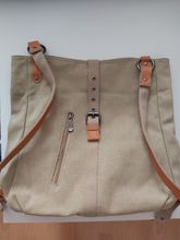 Got a canvas bag. Happy. Quality is good. Threads do not hang, the seams are even, the zippers all work. A lot of pockets are my favorite theme. I washed it right away. She's wet in the photo. I still like vertical pockets. .. It's super. It is very convenient to get the phone or travel without removing the backpack. thanks