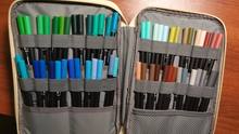 Качество исполнения пенал отличное, на 5 баллов. Ткань гладкая, рисунок чёткий, все строчки ровные, ни одной нитки. 120 фломастеров уместились с трудом. Доставка в постомат. Пенал рекомендую. С продавцом не общалась.